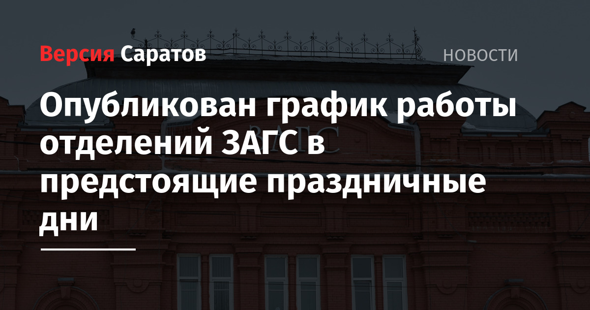 7, 8 и 9 марта будут выходными для Специализированного отдела регистрации смерти и Архива. 8, 9 и 10 марта станут выходными для всех остальных отделов ЗАГС области (как в Саратове, так и в районах). Управление по делам ЗАГС, Специализированный отдел регистрации смерти и Архив возобновят приём граждан с 10 марта 2026 года. Все остальные отделы ЗАГС области начнут работу с 11 марта.