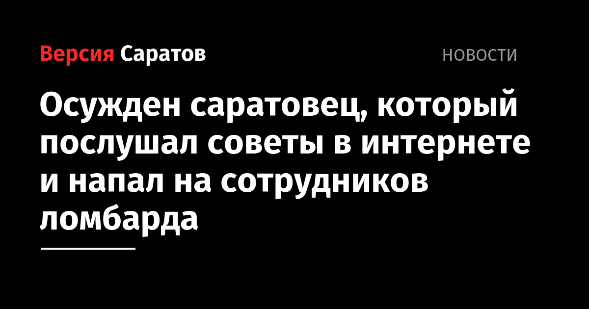 В Саратове вынесли приговор по уголовному делу в отношении 55–летнего местного жителя. За нападение на ломбард он признан виновным в разбое (ч. 2 ст. 162 УК РФ). Об этом рассказали в прокуратуре региона.