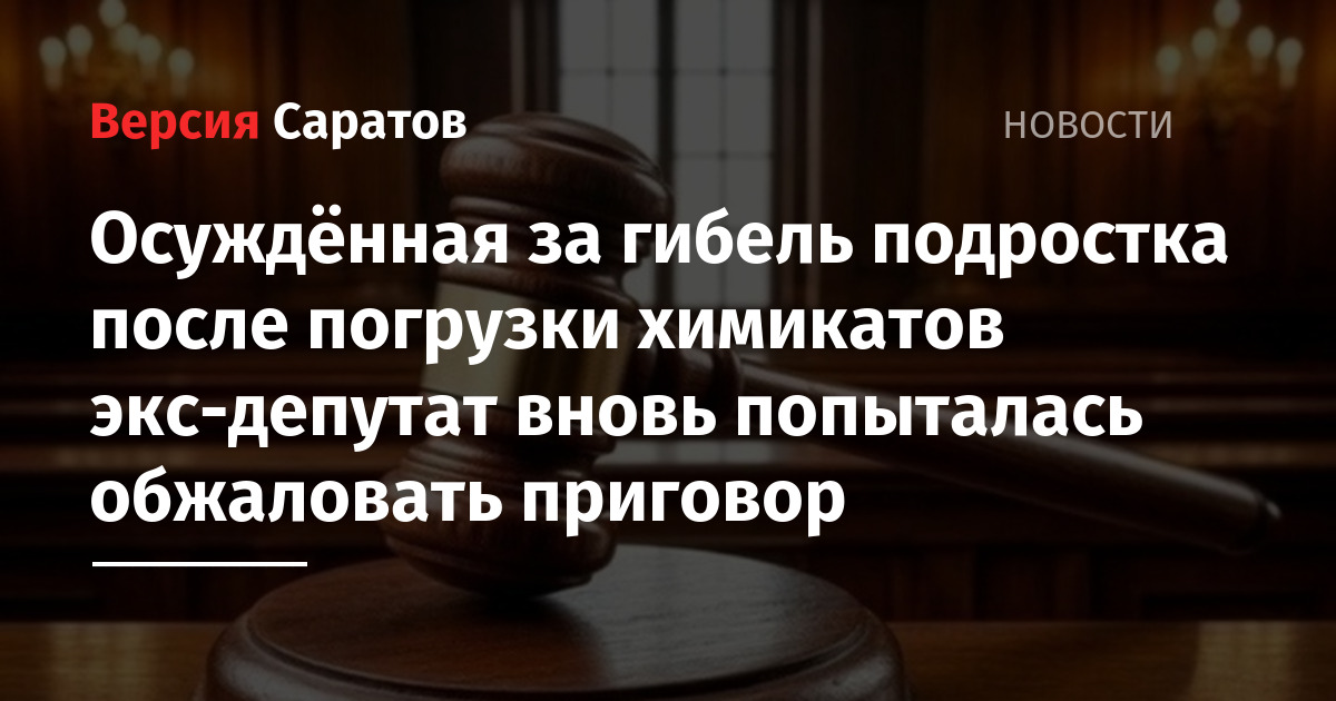В Первом кассационном суде общей юрисдикции в Саратове рассмотрели дело экс-депутата районного собрания Валентины Анохиной, осуждённой за нарушение условий хранения опасных химикатов, из-за которого погиб 15-летний подросток. Об этом рассказали в пресс-службе инстанции.