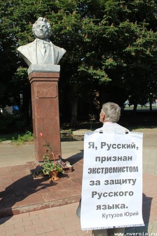 Осужденный за экстремизм пенсионер Юрий Кутузов устроил одиночный пикет у памятника Пушкину в парке Липки. Кутузов возложил цветы к монументу поэта и выступил за чистоту русского языка.