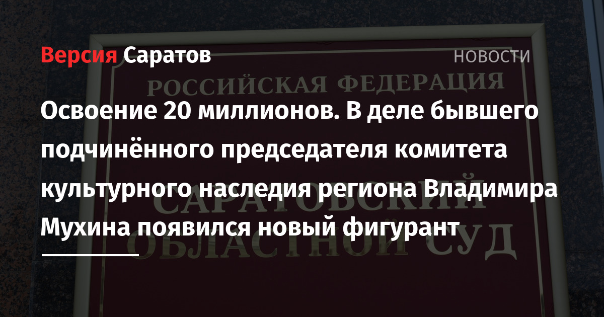 Освоение 20 миллионов. В деле бывшего подчинённого председателя комитета культурного наследия региона Владимира Мухина появился новый фигурант