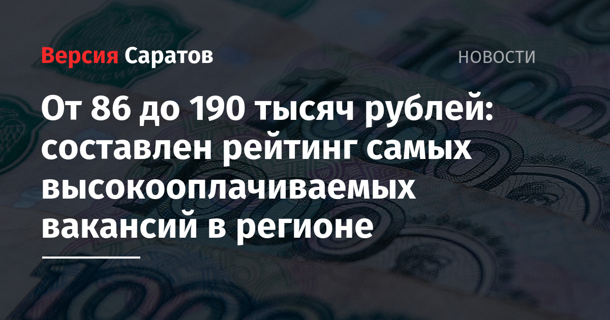 В Саратовской области в топ-5 самых высокооплачиваемых вошли вакансии с предлагаемыми заработными платами от 86 до 190 тысяч рублей. Упомянутый список ежемесячно на основе собственной базы данных составляют аналитики SuperJob.