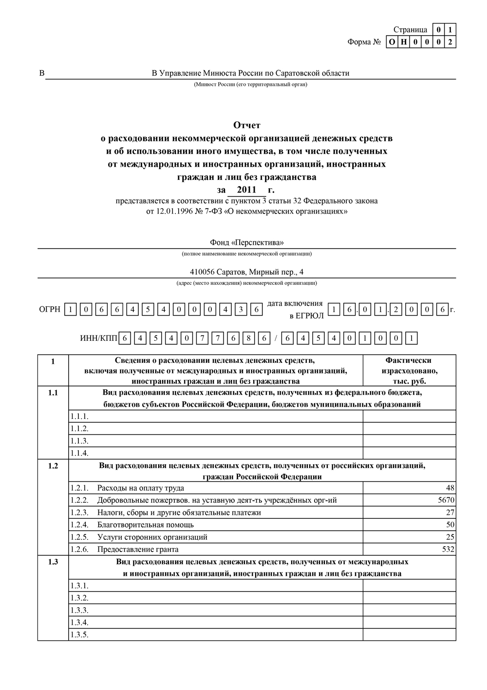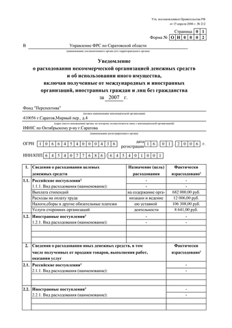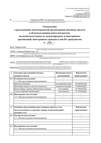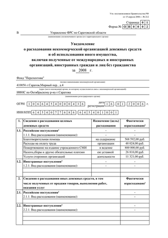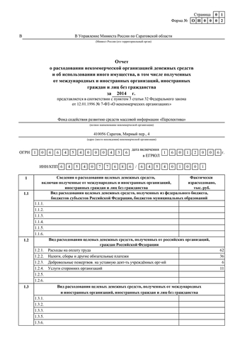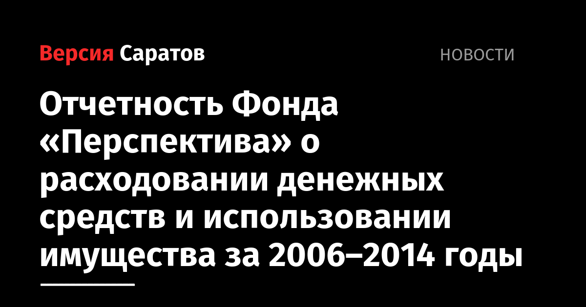 В соответствии с требованиями Федерального закона от 12 января 1996 г. N 7-ФЗ «О некоммерческих организациях», Фонд «Перспектива» (ОГРН 1066454000436, ИНН 6454077686) публикует отчеты за 2006–2014 гг. о расходовании денежных средств и использовании имущества.