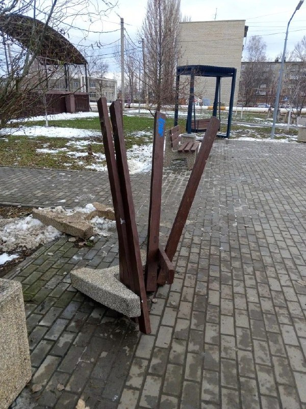 — сломаны скамейки в сквере «Верным сынам Отечества»;