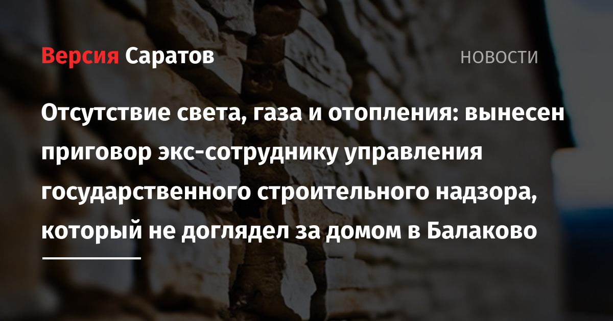 Отсутствие света, газа и отопления: вынесен приговор экс-сотруднику управления государственного строительного надзора, который не доглядел за домом в Балаково
