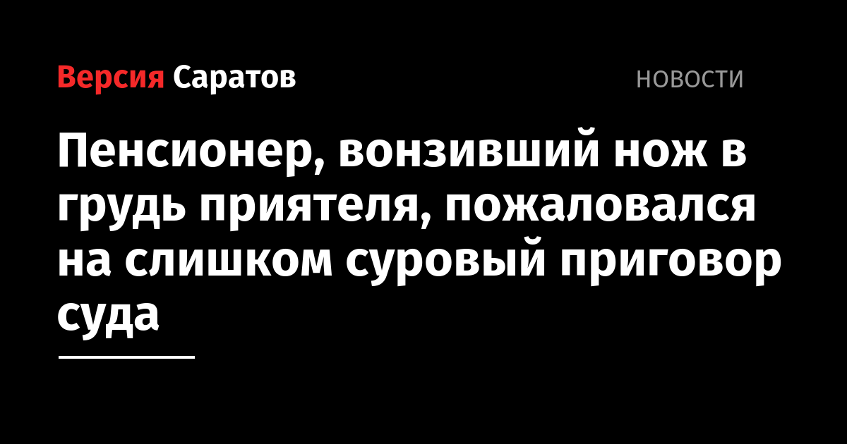 В Саратовский областной суд поступила апелляционная жалоба от 62-летнего жителя поселка Екатериновка. Пенсионер, осужденный за убийство, заявил, что ему было назначено слишком суровое наказание, сообщает прокуратура региона.