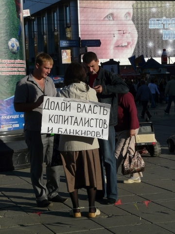В эти минуты на площади им. Кирова возле цирка проходит митинг «красных». Когда на место подоспел корреспондент ИА «Версия-Саратов», колоритный мужчина в советской военной форме под флагами РКПБ как раз призывал в мегафон к восстановлению Советской власти и критиковал «буржуазные партии», то бишь «единороссов» и «справедливороссов», называя их «демократами в кавычках». Также перед собравшимися пенсионерами выступила заместитель председателя областного совета рабочих и крестьян Ольга Афанасьева.