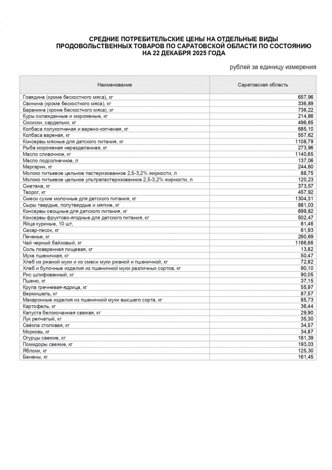 Цены на остальные виды продуктов изменились незначительно. С полным списком актуальных средних цен можно ознакомиться в таблице ниже.