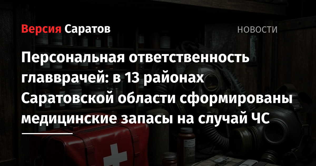 В Саратовской области были утверждены места для хранения запасов оперативно-тактического резерва, предназначенного для службы медицины катастроф. Приказ регионального минздрава о создании таких резервов был опубликован 24 декабря на сайте правовой информации.