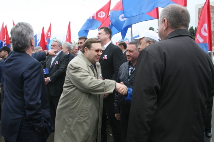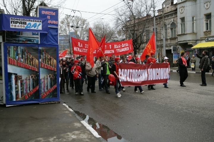Первого мая в областном центре прошли праздничные митинги. Так, на Театральной площади с разницей всего в двадцать минут отмитинговали единороссы и коммунисты. "Единоросская" колонна прошла по проспекту до Театральной площади, где председатель Федерации профсоюзных организаций Саратовской области Михаил Ткаченко открыл митинг «За достойные рабочие места и достойную зарплату».