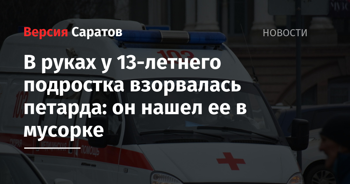 По данным прокуратуры Саратовской области, инцидент произошел в обеденное время. Подросток поджег найденные петарды. При детонации он получил травмы кистей рук и ног.
