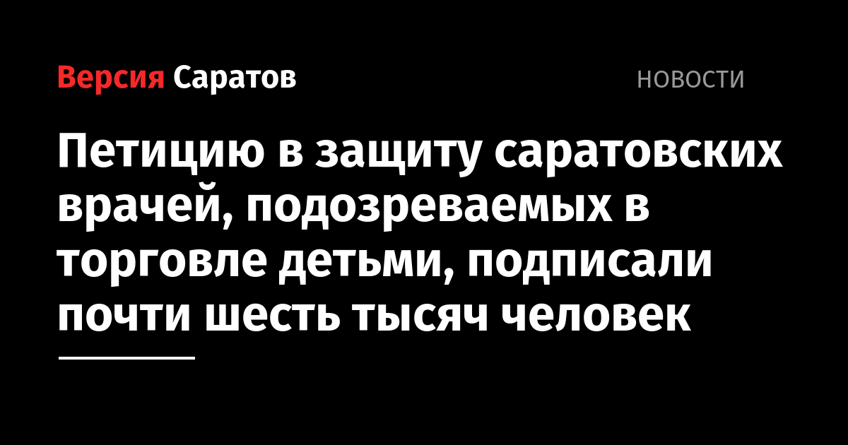 На портале Change.org появилась петиция, созданная в защиту врачей, которые стали подозреваемыми в деле о торговле детьми и попали в СИЗО. В Интернете также опубликовали видеоролик в поддержку докторов. Отметим, двое медиков, Тарас Ашитков и Юлиана Иванова, ранее работали в Саратове.