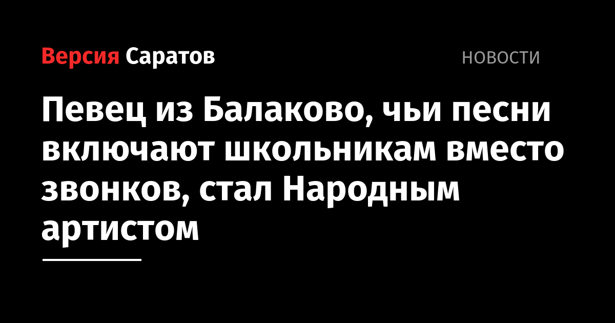 Певец из Балаково, чьи песни включают школьникам вместо звонков, стал Народным артистом