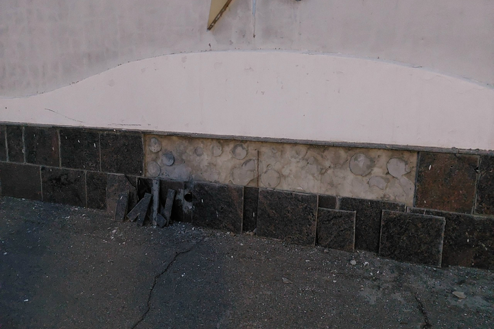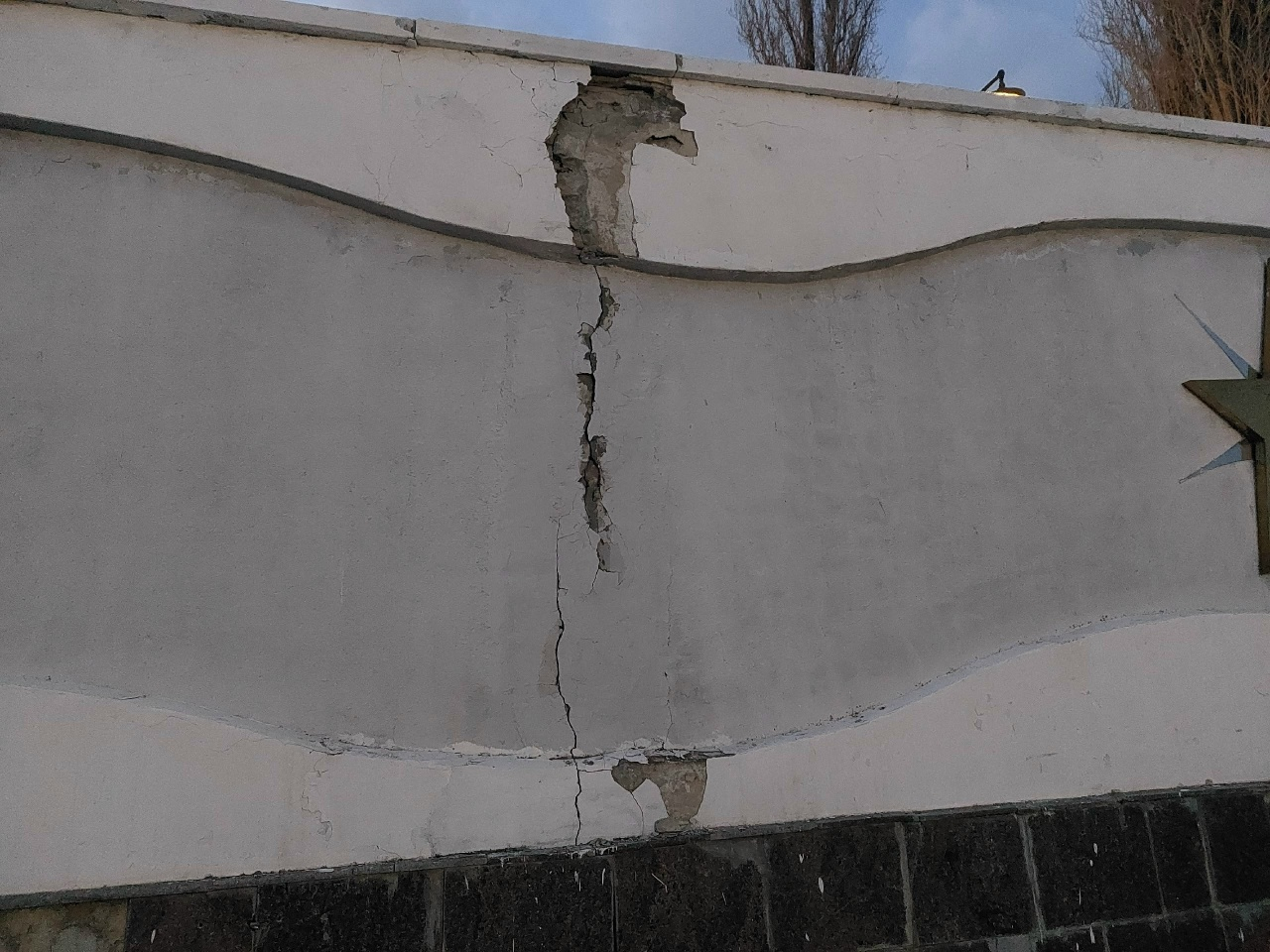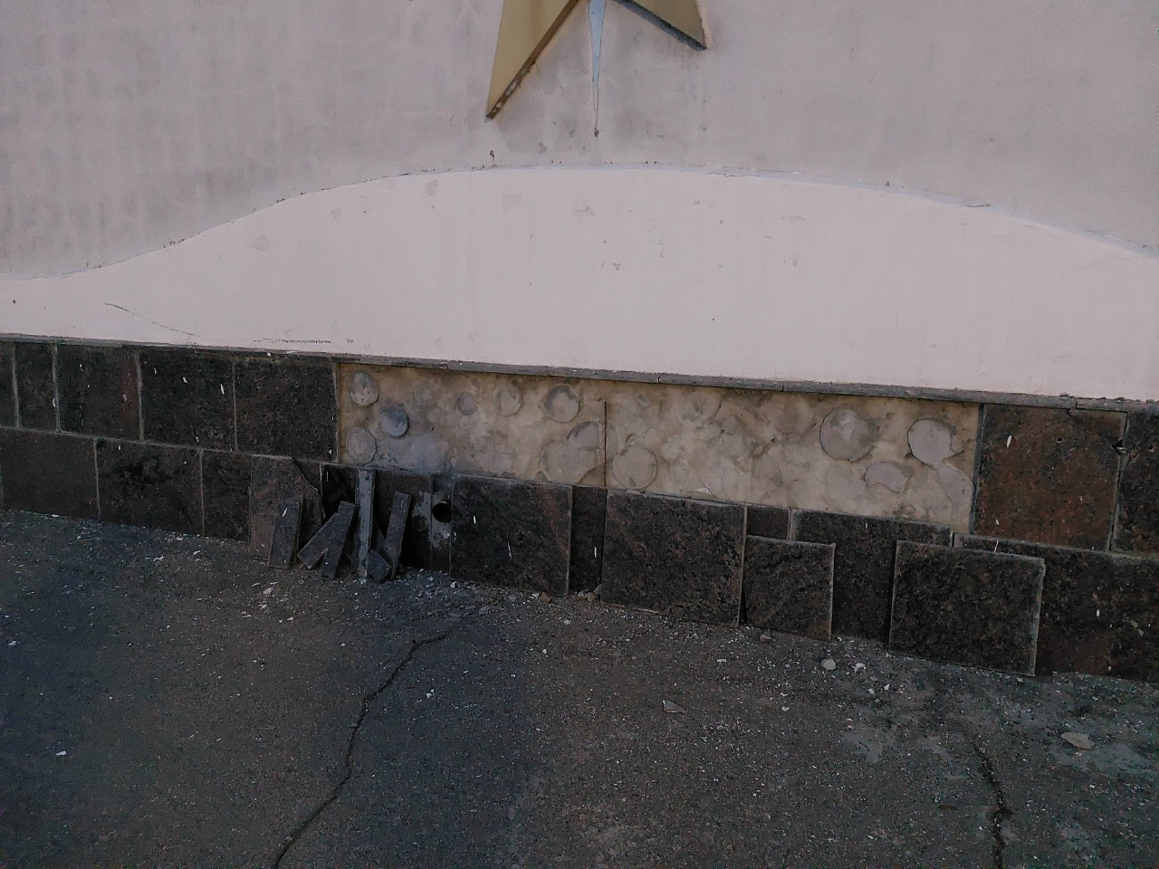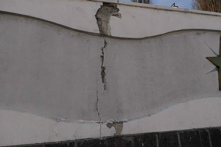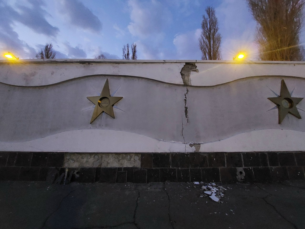 «Окружение наших „звёзд“ на набережной выглядит мрачно. На стене трещины, плитку снимают, штукатурка просто сыпется. Смотреть на всё это грустно: делали памятное место для горожан, а сейчас как будто оно никому больше не нужно», — поделился читатель.