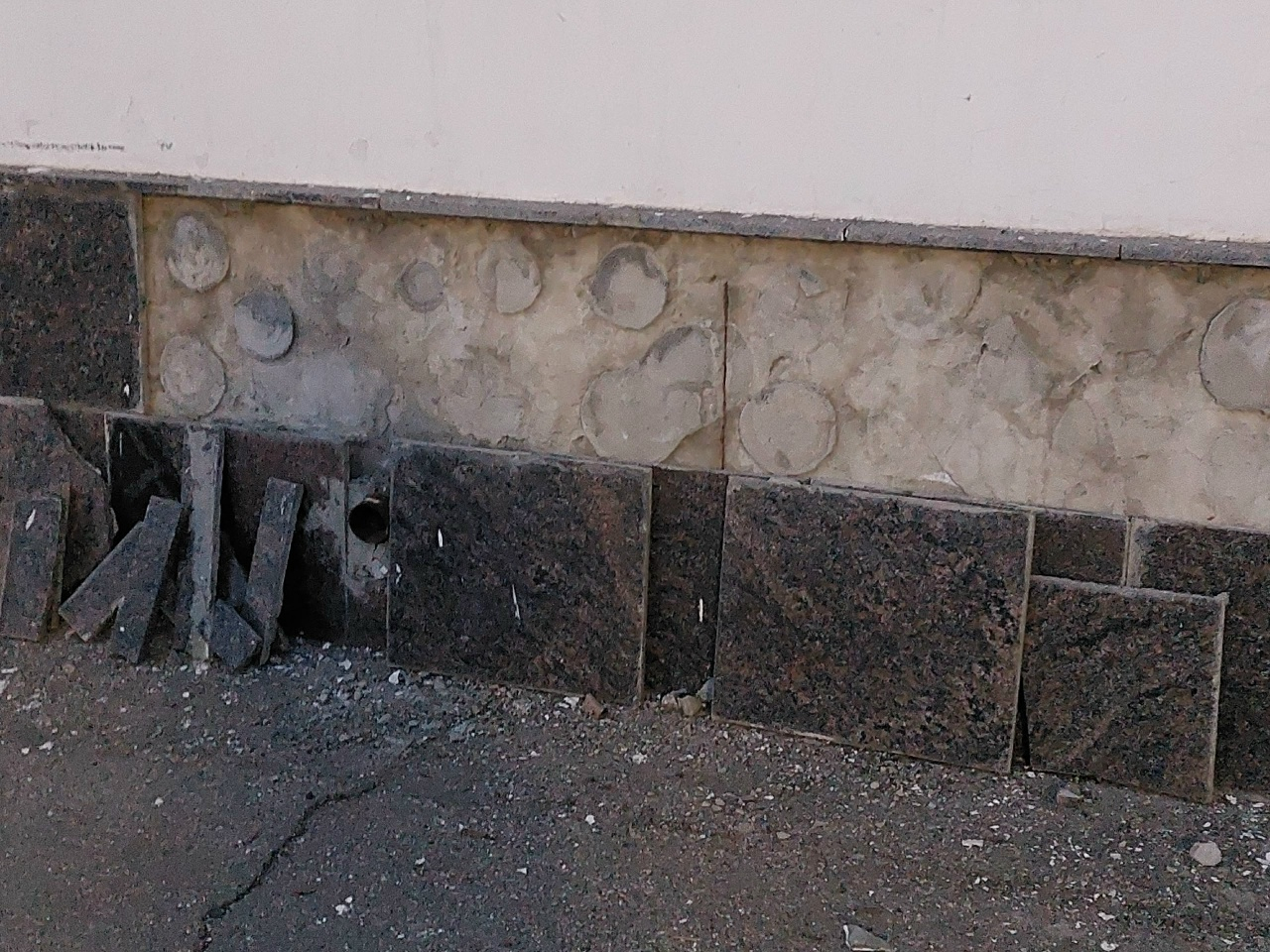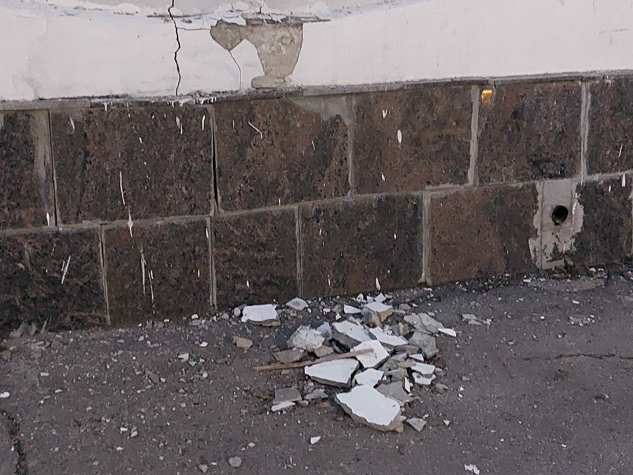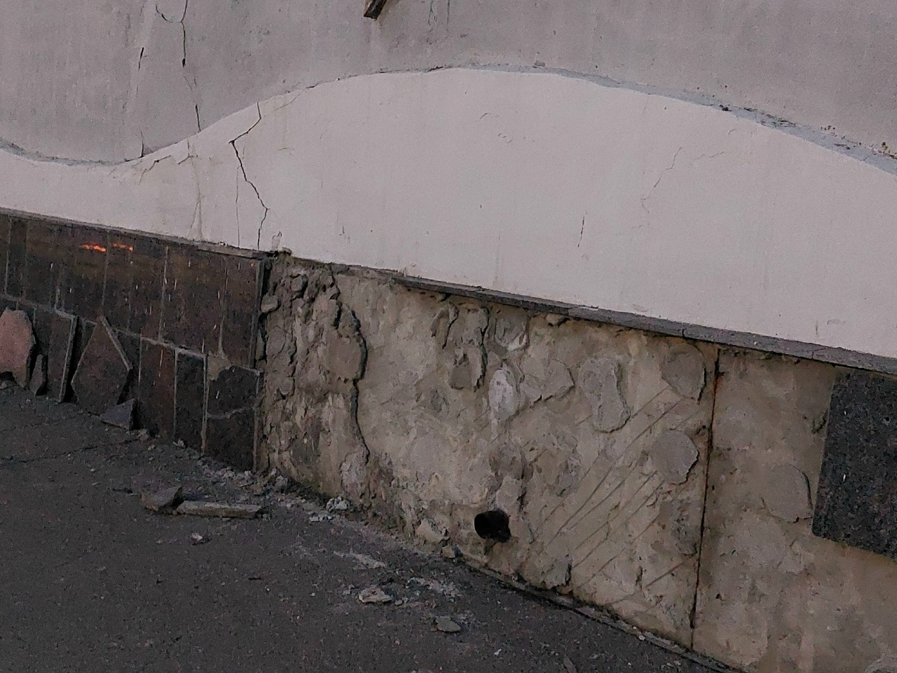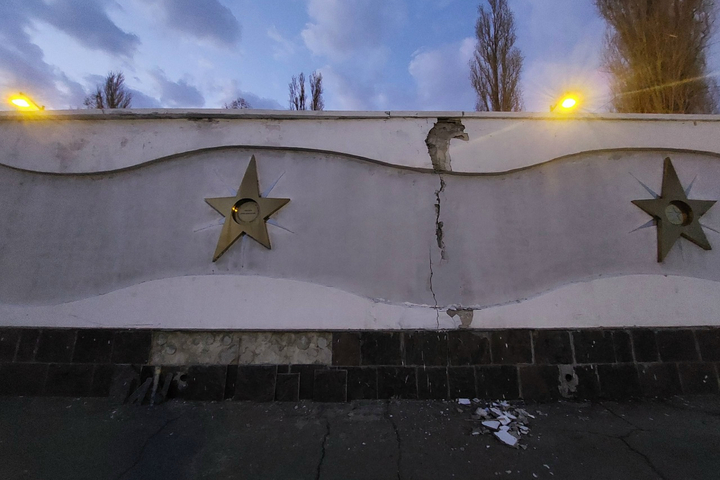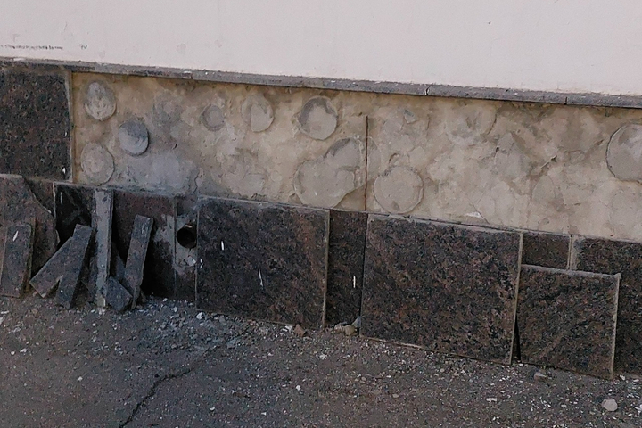 «Окружение наших „звёзд“ на набережной выглядит мрачно. На стене трещины, плитку снимают, штукатурка просто сыпется. Смотреть на всё это грустно: делали памятное место для горожан, а сейчас как будто оно никому больше не нужно», — поделился читатель.