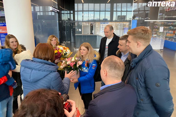 С цветами и подарками в аэропорту «Гагарин» победительницу торжественно встретили мама спортсменки — прославленный саратовский тренер Екатерина Халиуллина, исполнительный директор областной федерации биатлона Сергей Литяк, председатель комитета по спорту и молодежной политики областной Думы Дмитрий Пьяных, заместитель министра спорта области Андрей Абрашин, а также близкие и друзья.