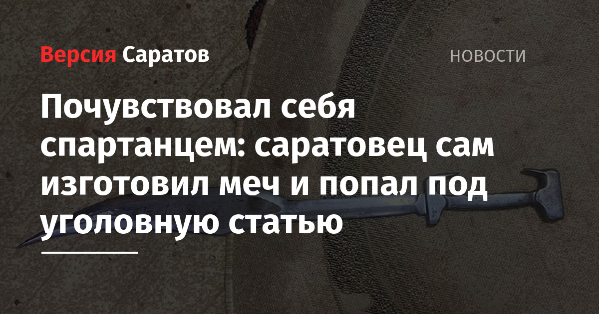Подозреваемый пояснил, что меч изготовил сам из автомобильной рессоры. «Пускать в ход оружие саратовец не собирался, по его словам, он хотел сделать примерную копию меча, которым когда-то были вооружены легендарные спартанцы», — говорится в официальном сообщении.
