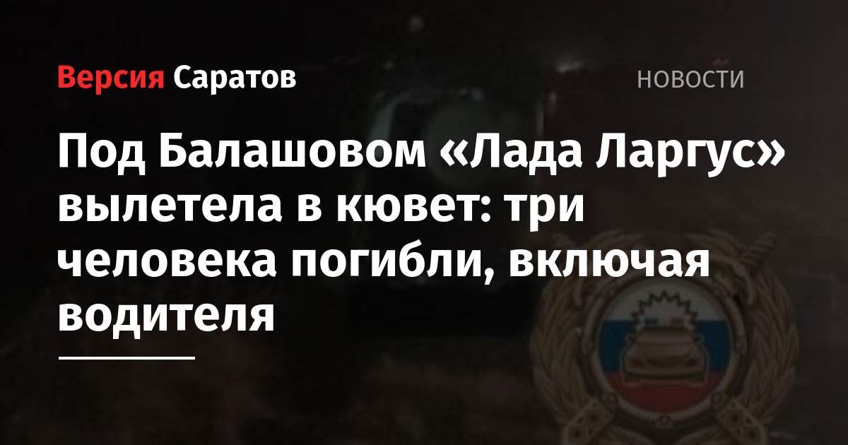 Три человека погибли в ночном ДТП в Балашовском районе. Авария произошла около села Гусевка около четырех часов ночи. По данным регионального управления ГИБДД, «Лада Ларгус» с шестью пассажирами вылетела в кювет и опрокинулась.