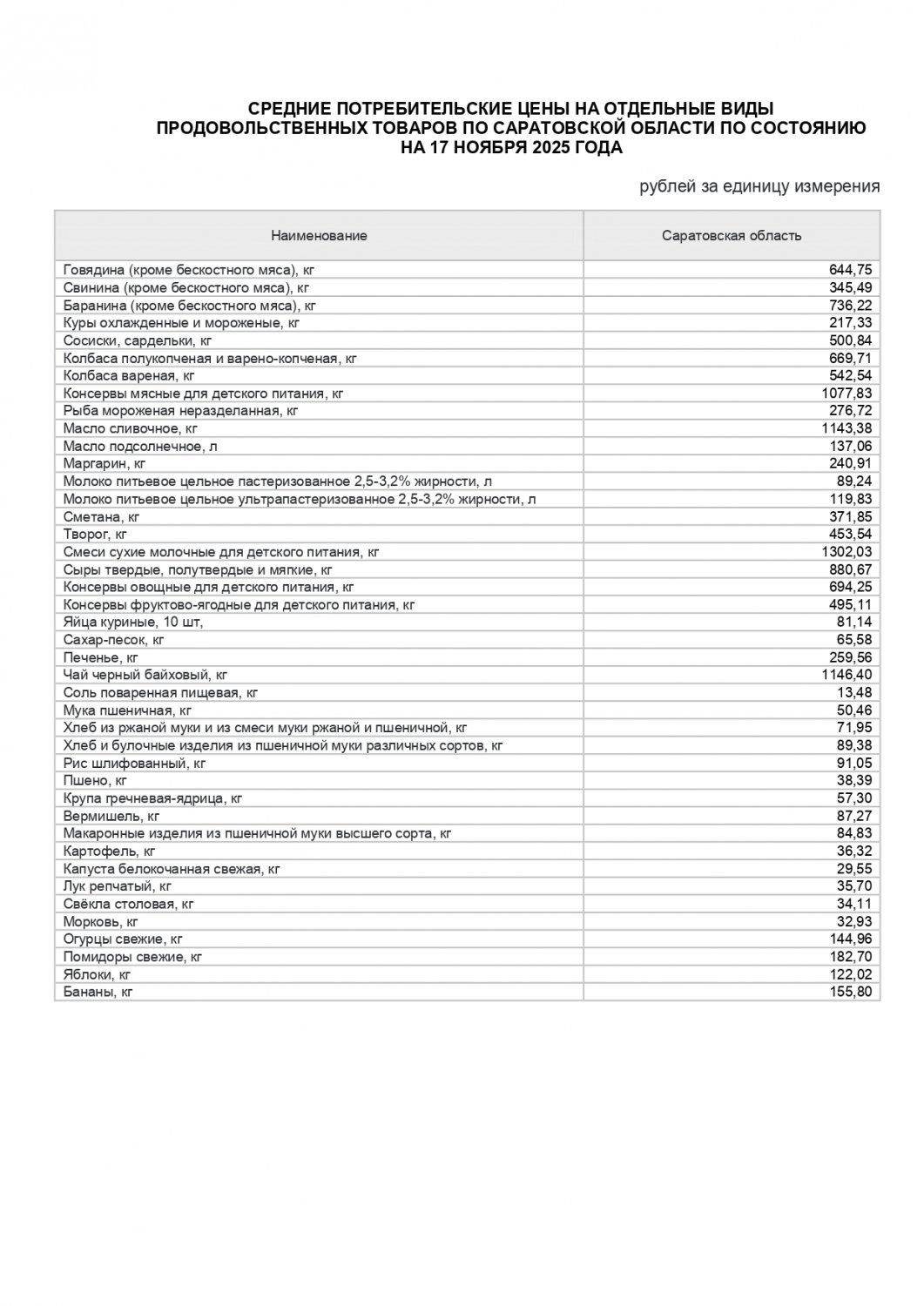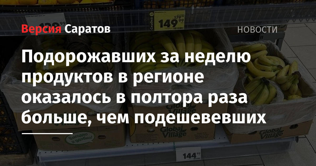 На прошлом неделе в Саратовской области подорожало 6 основных видов продуктов, подешевело — в полтора раза меньше. Данные еженедельного мониторинга изменения средних потребительских цен на отдельные виды продовольственных товаров, актуальные на 17 ноября, опубликовал Саратовстат.