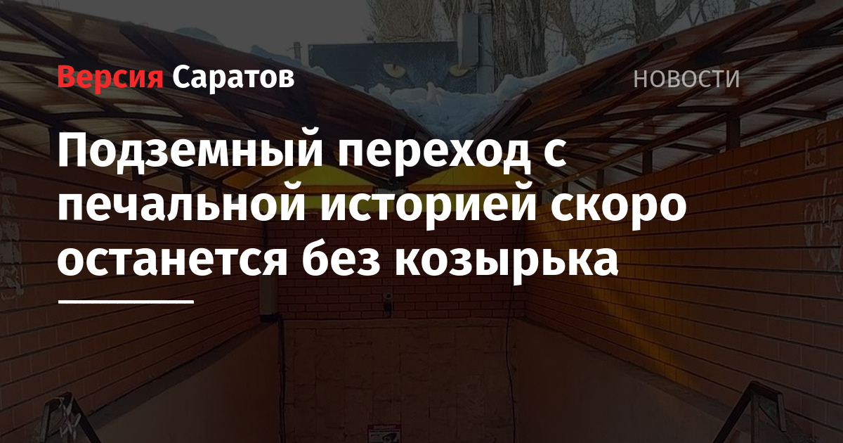 С подземного перехода в Ленинском районе (глава Игорь Молчанов) Саратова уберут козырёк, который был повреждён во время снегопада позавчера. Об этом проинформировали в районной администрации.
