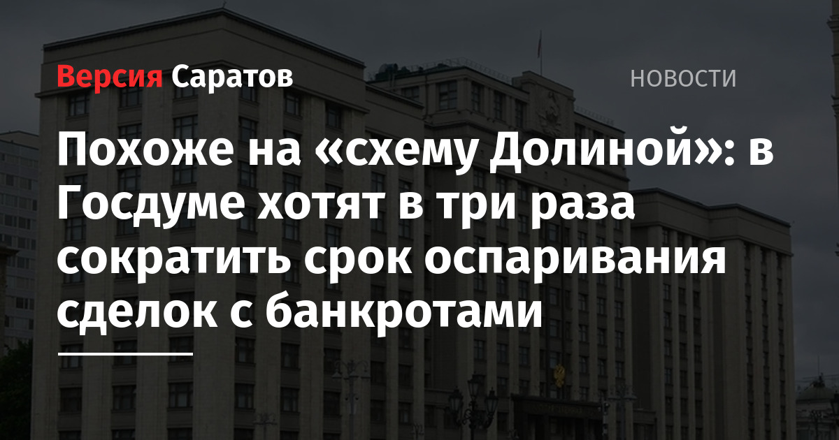 Похоже на «схему Долиной»: в Госдуме хотят в три раза сократить срок оспаривания сделок с банкротами