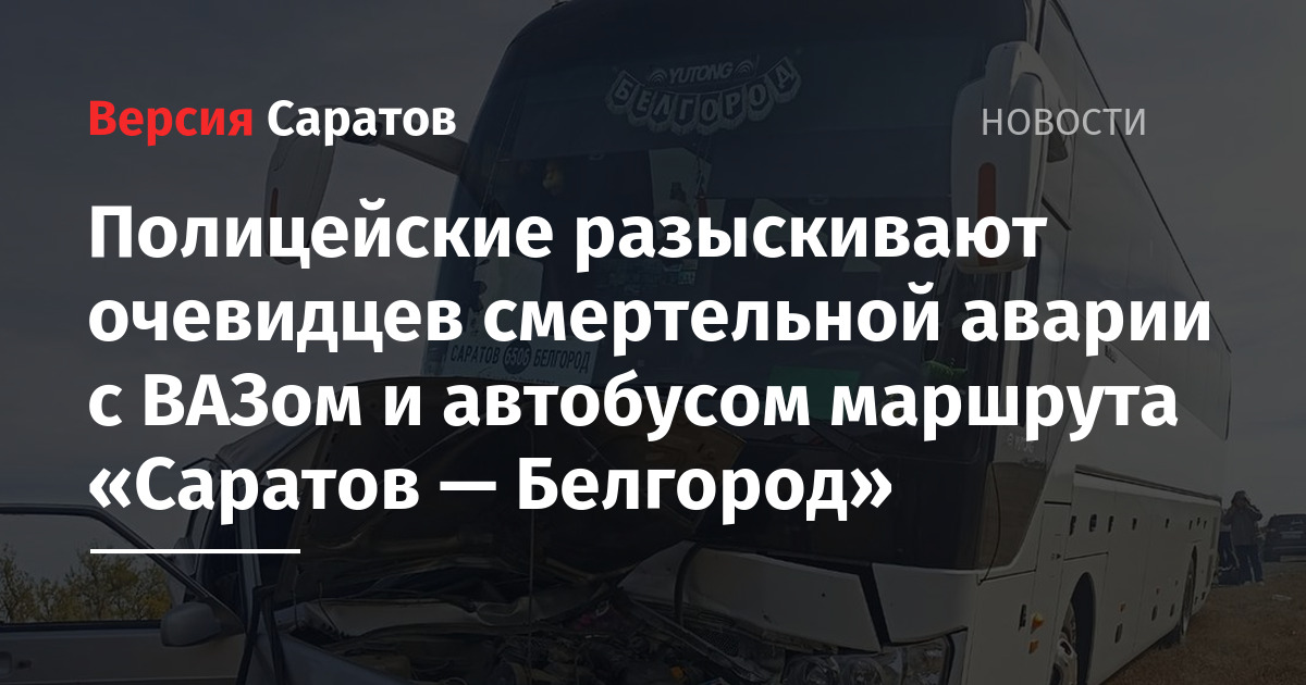 Напомним, авария случилась утром 4 октября. У посёлка Песчаный Умет в Гагаринском районе столкнулись ВАЗ-2115 и автобус, следующий по маршруту «Саратов — Белгород». В результате происшествия погиб 55-летний водитель легковушки. В автобусе пострадавших не было. Обстоятельства произошедшего устанавливаются.