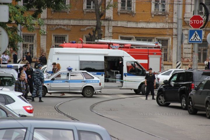 В центре Саратова на пересечении Советской и Мирного переулка продолжается операция правоохранительных органов. К месту прибыли автомобили пожарной службы, ОМОНа и "скорой помощи". В беседе с корреспондентом ИА "Версия-Саратов" один из полицейских заявил: "Граната лежит без чеки". Из-за полицейской операции были остановлены трамваи.