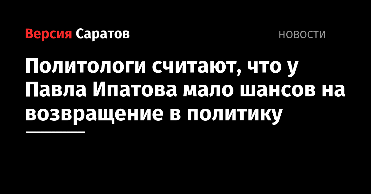 Большая часть бывших губернаторов остаются заметными политическими фигурами и сохраняют свое влияние после отставки. К такому выводу пришли эксперты фонда «Петербургская политика», проведшие исследование «Судьбы бывших глав российских регионов». Вместе с тем, шансы на возвращение в политику бывшего саратовского губернатора Павла Ипатова политологи оценивают как крайне невысокие. В случае Ипатова, так же, как и в случае с экс-губернаторами Амурской и Самарской областей, причиной этого считают нынешнее место работы Павла Леонидовича. Напомним, что он занял пост заместителя гендиректора концерна «Росэнергоатом».