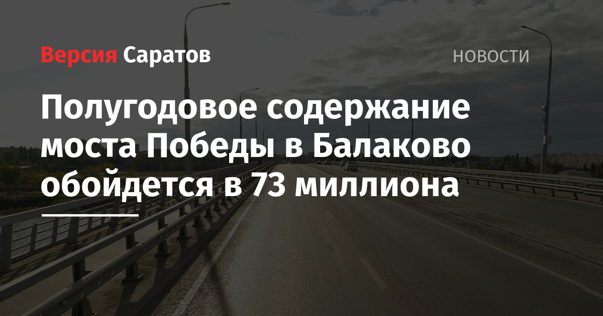 В Балаково за содержание моста Победы в течение полугода заплатят 73 миллиона рублей. Торги были объявлены вчера, 23 апреля, ГКУ «Дирекция дорожного хозяйства».