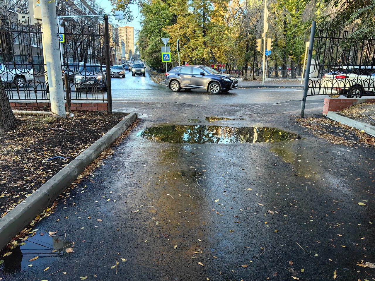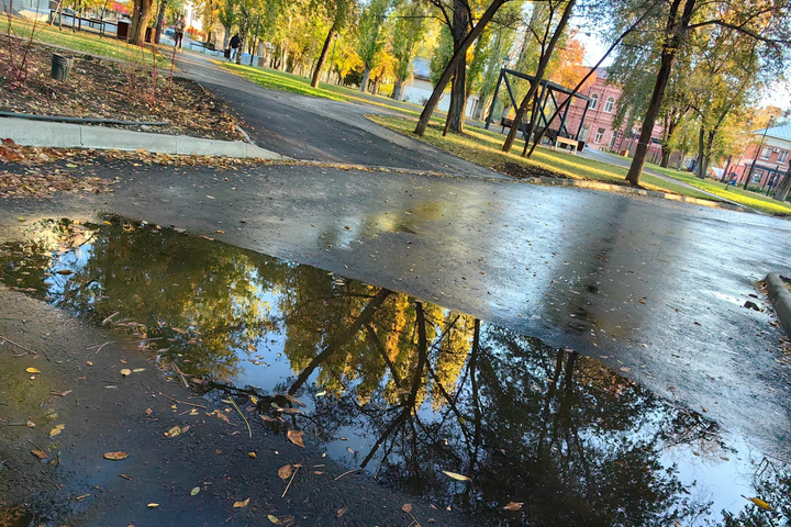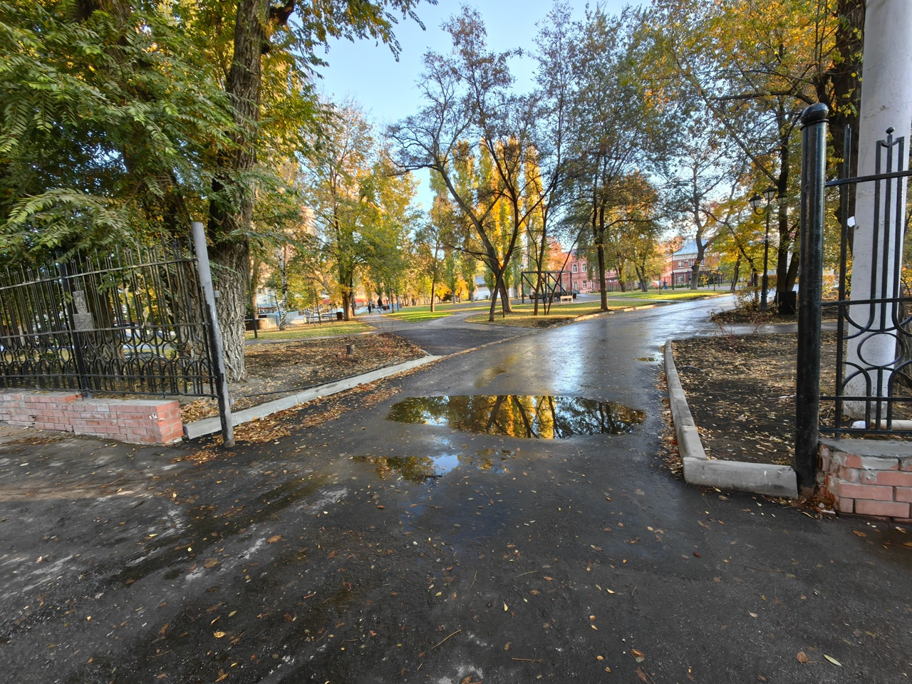 «До реконструкции на входе с Рабочей всегда была лужа, через которую посетителям приходилось „перелетать“, чтобы попасть в парк. Сейчас тут проложили новый асфальт. И вот прошёл осенний дождик, который показал, что власти решили сохранить для нас эту первозданную лужу! Неужели у этого парка нет людей, которые отвечают за него? Посадить бы их. Сюда. В эту лужу. Может тогда что-то изменится?» — возмутилась горожанка.