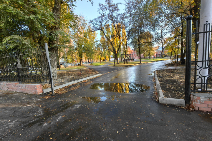 В Саратове открыт для прохода Детский парк, реконструкция которого проходила с середины лета. Здесь пока завершены не все работы. Так, на входе со стороны улицы Рабочая отсутствуют ворота — они уже около недели валяются рядом на газоне. Однако сквозной проход от Рабочей к Советской через парк уже открыт и начинается он… с лужи, к которой уже привыкли горожане.