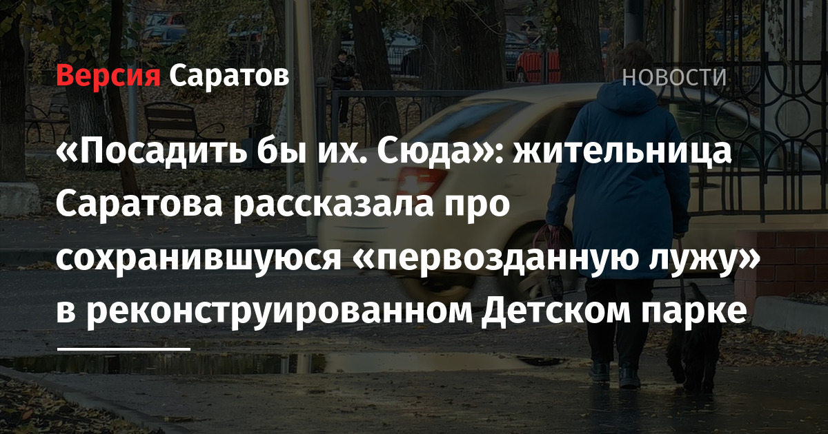 «Посадить бы их. Сюда»: жительница Саратова рассказала про сохранившуюся «первозданную лужу» в реконструированном Детском парке