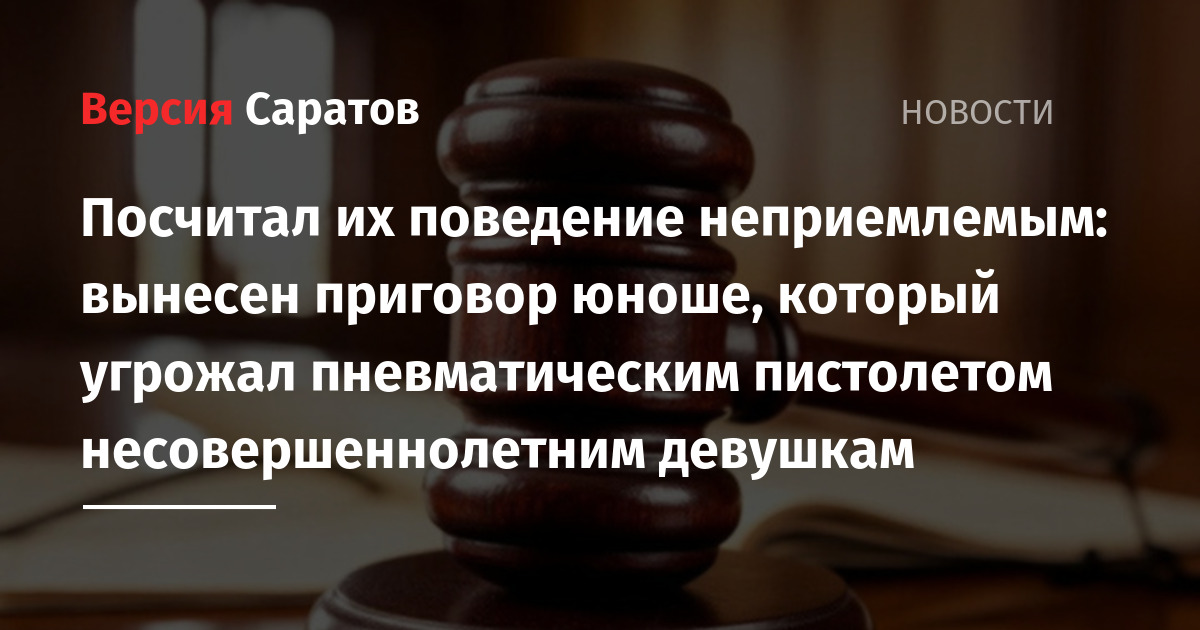 По информации ведомства, 10 августа молодой человек выпивал в машине у дома на улице Комсомольская в Татищево. В это время неподалеку от них находились две ранее ему знакомые несовершеннолетние девушки, с которыми он решил пообщаться. В ходе беседы с ними юноша, «посчитав неприемлемым поведение собеседниц», вернулся в автомобиль, взял пневматический пистолет и стал угрожать им девушкам.