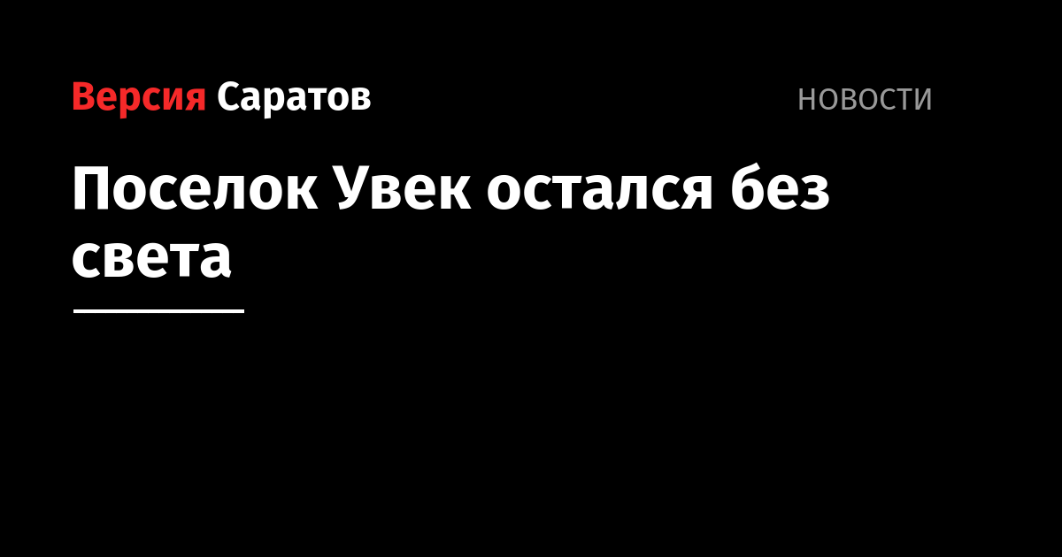 Сегодня, 11 октября, поселок Увек в Заводском районе Саратова остался без света. Об этом сообщает администрация муниципалитета.
