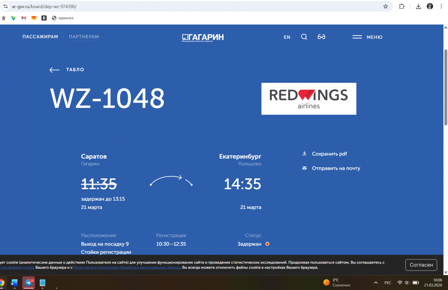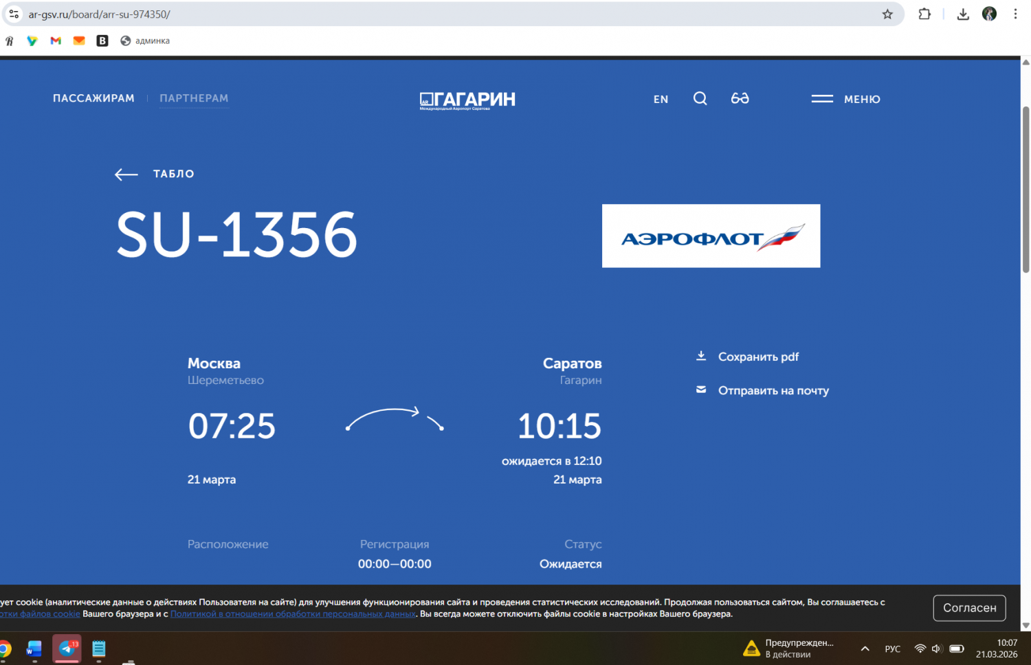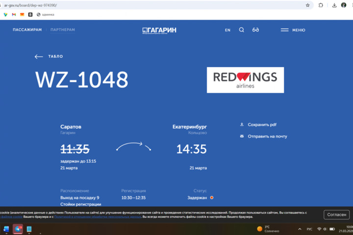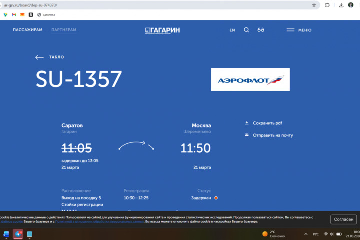 - Саратовский аэропорт «Гагарин» восстановил работу