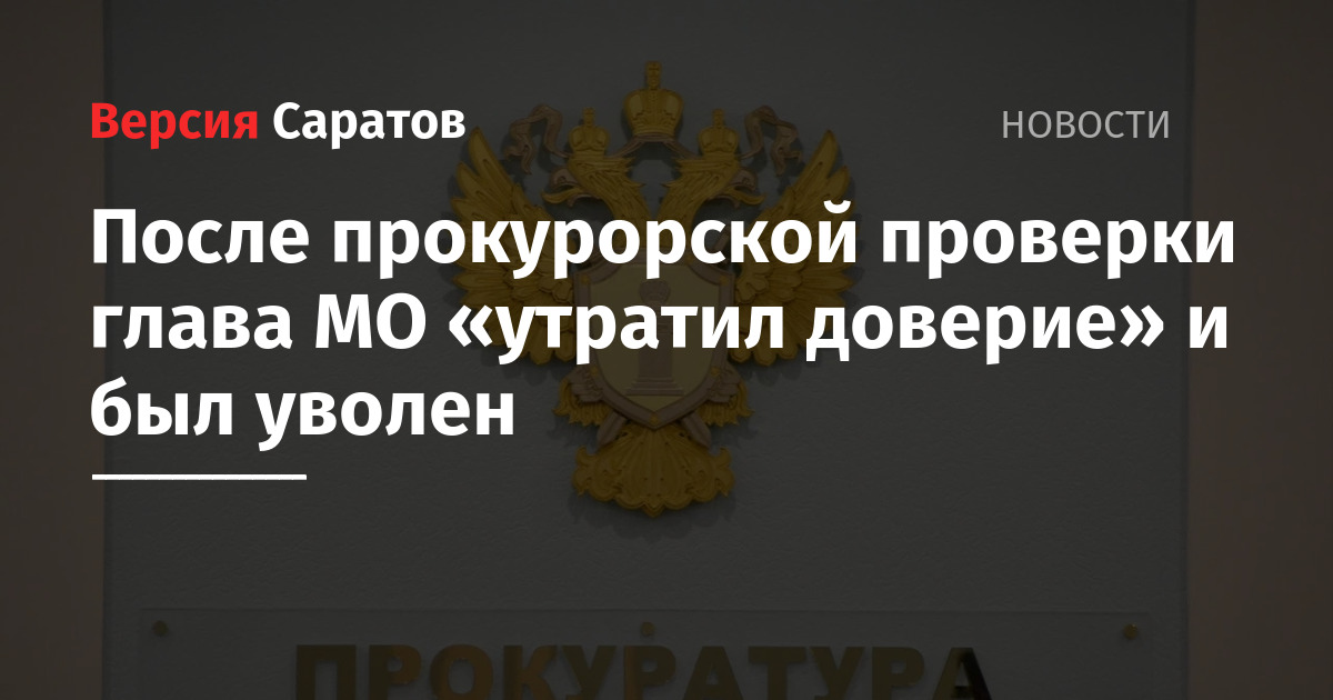 В Саратовской области глава муниципального образования был уволен в связи с утратой доверия. Это произошло после проверки, проведенной прокуратурой.