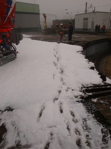 Специально для учений из депо выгнали новенький блестящий локомотив, который и стал объектом тушения. «Такой локомотив может сгореть всего за 10 минут, а стоит он порядка 75 миллионов рублей», - подчеркнул Быков. Для реалистичности по бокам тепловоза поставили два контейнера с горюче-смазочными материалами и подожгли.Сам процесс тушения пожара со стороны выглядел очень эффектно. Пожарные сбивали пламя из пенной установки «пурга». Она вполне оправдывает свое название — на какое-то время в радиусе 10 метров от «горящего» локомотива наступила зима. «Мы уложились в норматив. При тушении пожара не возникло практически никаких сложностей. С этим поездом мы уже Волгоград отстояли!» — оценил ход учений заместитель начальника пожарного поезда Василий Архипов.