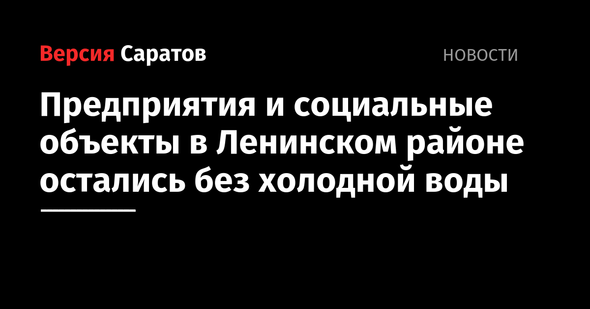 Сегодня, 19 июля, в Ленинском районе Саратова без холодной воды остались ряд жилых домов, организаций, заводов и медицинских учреждений. В ООО «КВС» сообщили, что до 18.00 будут проводиться работы на проспекте 50 лет Октября.