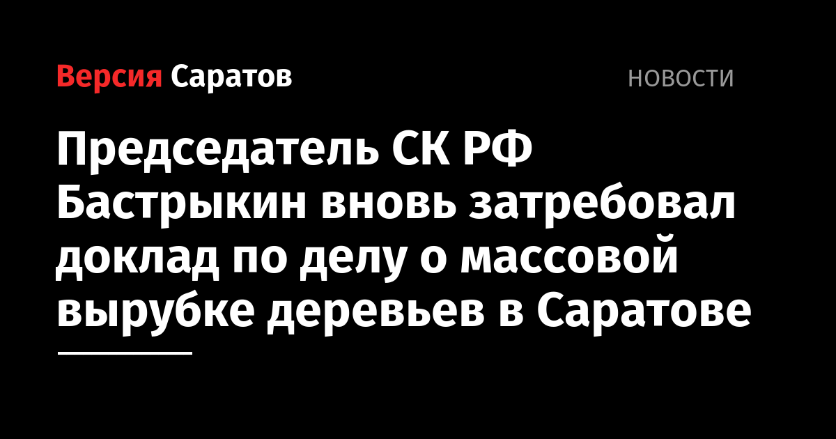 Председатель СК России Александр Бастрыкин запросил доклад по уголовному делу, возбужденному по факту незаконной вырубки лесных насаждений в поселке Шарковка, который находится на окраине Заводского района Саратова. Об этом сообщили в пресс-службе федерального ведомства.