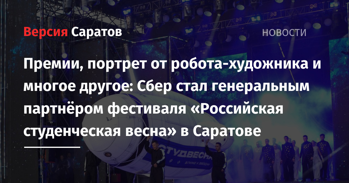 Вчера на Театральной площади в Саратове прошло открытие XXXII Всероссийского фестиваля «Российская студенческая весна». В «Студвесне» примут участие порядка 4 тысяч студентов со всей страны. Генеральным партнёром фестиваля выступил Сбер.