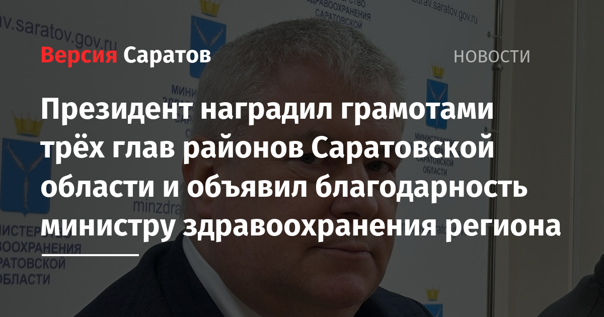 Президент наградил грамотами трёх глав районов Саратовской области и объявил благодарность министру здравоохранения региона