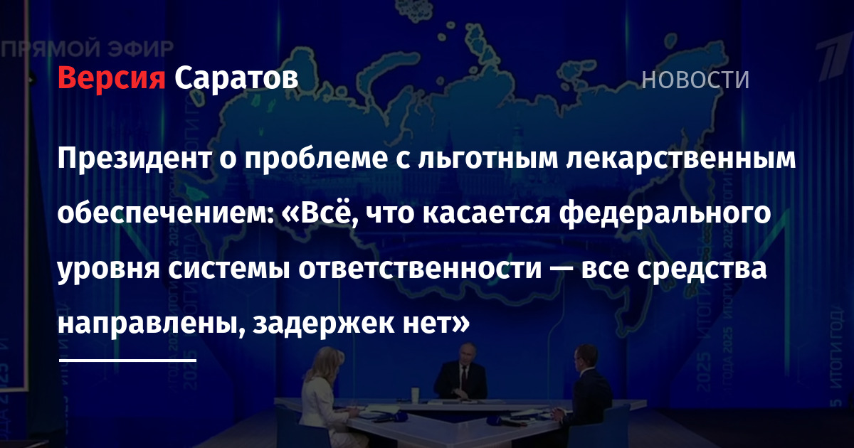 «Сказали всё, что касается федерального уровня системы ответственности — все средства направлены, задержек нет», — отметил Путин. По его словам, проблемы поставки льготных препаратов заключаются в логистике, заключении контрактов и распределении лекарств в аптечные сети.