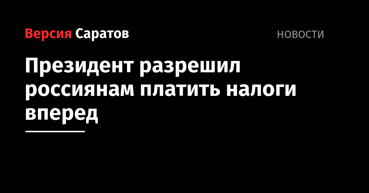 Президент Владимир Путин подписал закон, позволяющий россиянам платить налоги авансом, не дожидаясь уведомления. Соответствующий документ опубликован на портале правовой информации.