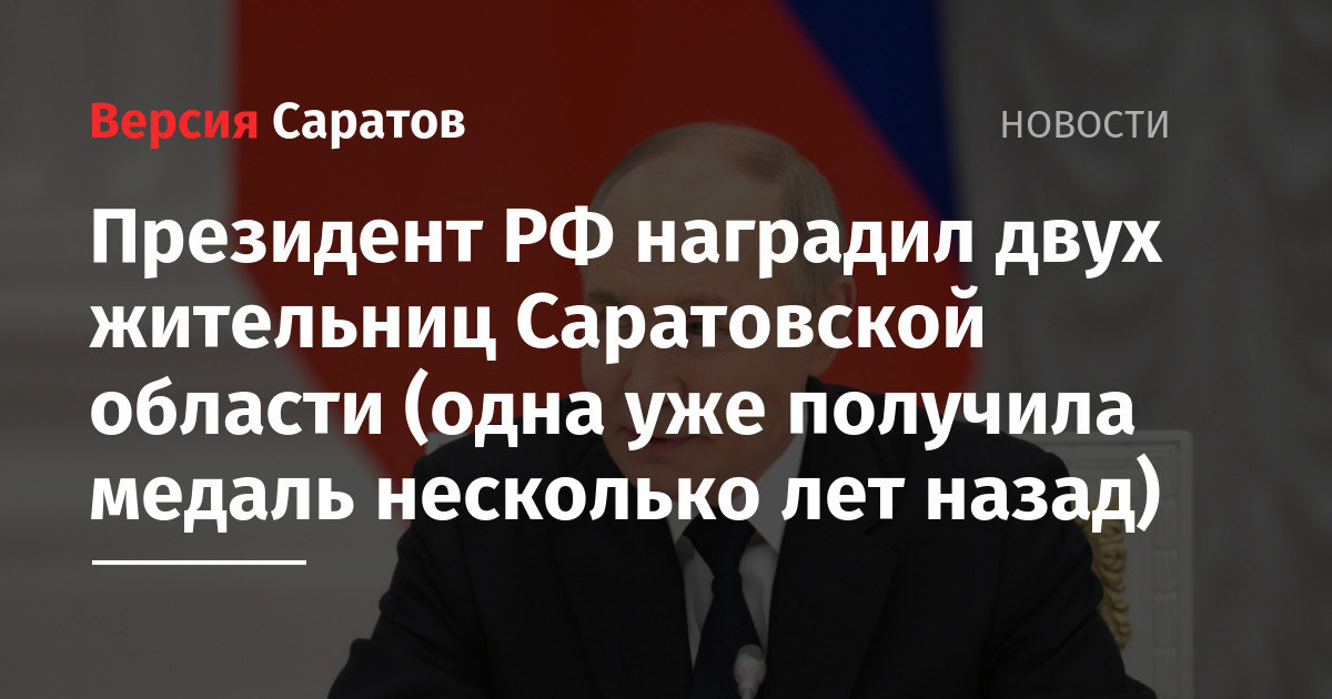 Президент РФ наградил двух жительниц Саратовской области (одна уже получила медаль несколько лет назад)