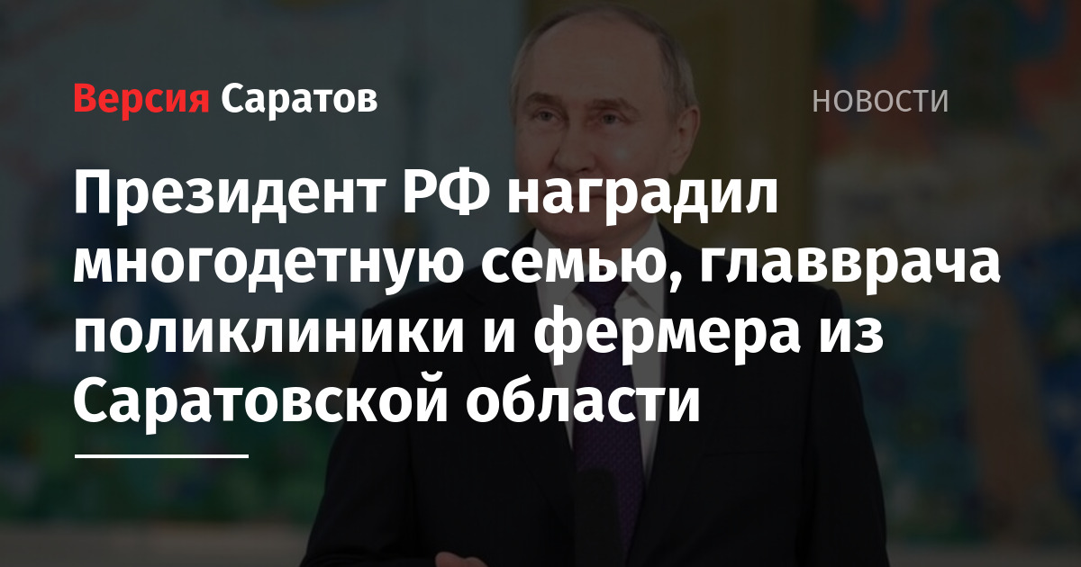 Президент РФ наградил многодетную семью, главврача поликлиники и фермера из Саратовской области