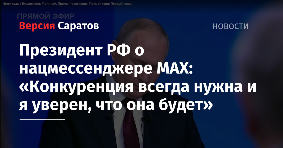 Президент РФ о нацмессенджере МАХ: «Конкуренция всегда нужна и я уверен, что она будет»