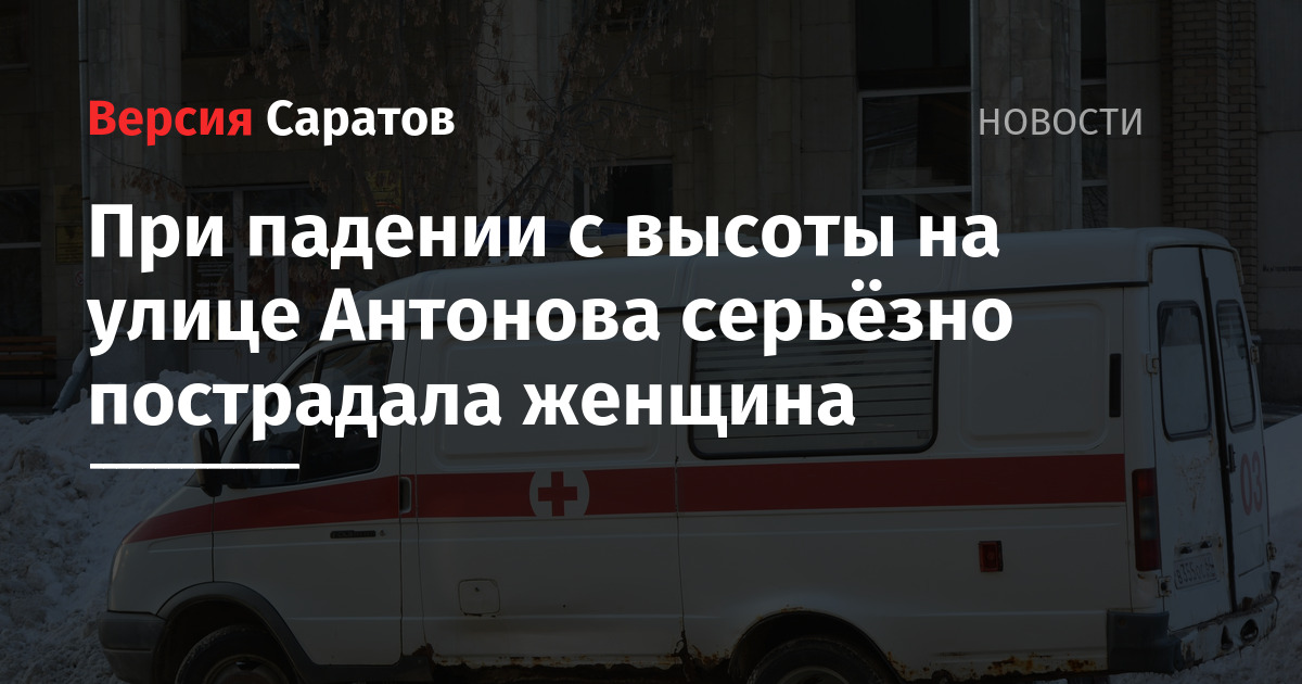 Сегодня, 14 января, в Саратове женщина пострадала при падении с высоты. Об этом ИА «Версия-Саратов» рассказали в региональном минздраве.