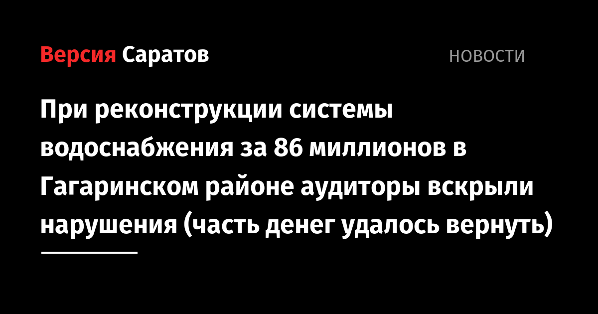 При реконструкции системы водоснабжения за 86 миллионов в Гагаринском районе аудиторы вскрыли нарушения (часть денег удалось вернуть)
