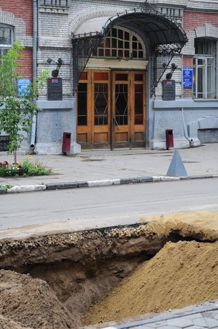Сегодня, 20 июля, на месте известной ямы на улице Сакко и Ванцетти в Саратове (вокруг которой был нарисован шарж на губернатора Саратовской области Валерия Радаева) рабочие раскопали дорогу на площади несколько метров. Как пояснили корреспонденту ИА "Версия-Саратов" находящиеся на месте специалисты, обнаружилось, что под дорогой в этом месте лопнула бетонная плита. Плиту уже заменили и к вечеру обещают все работы завершить. Дорожное полотно, по словам рабочих, должны восстановить завтра.