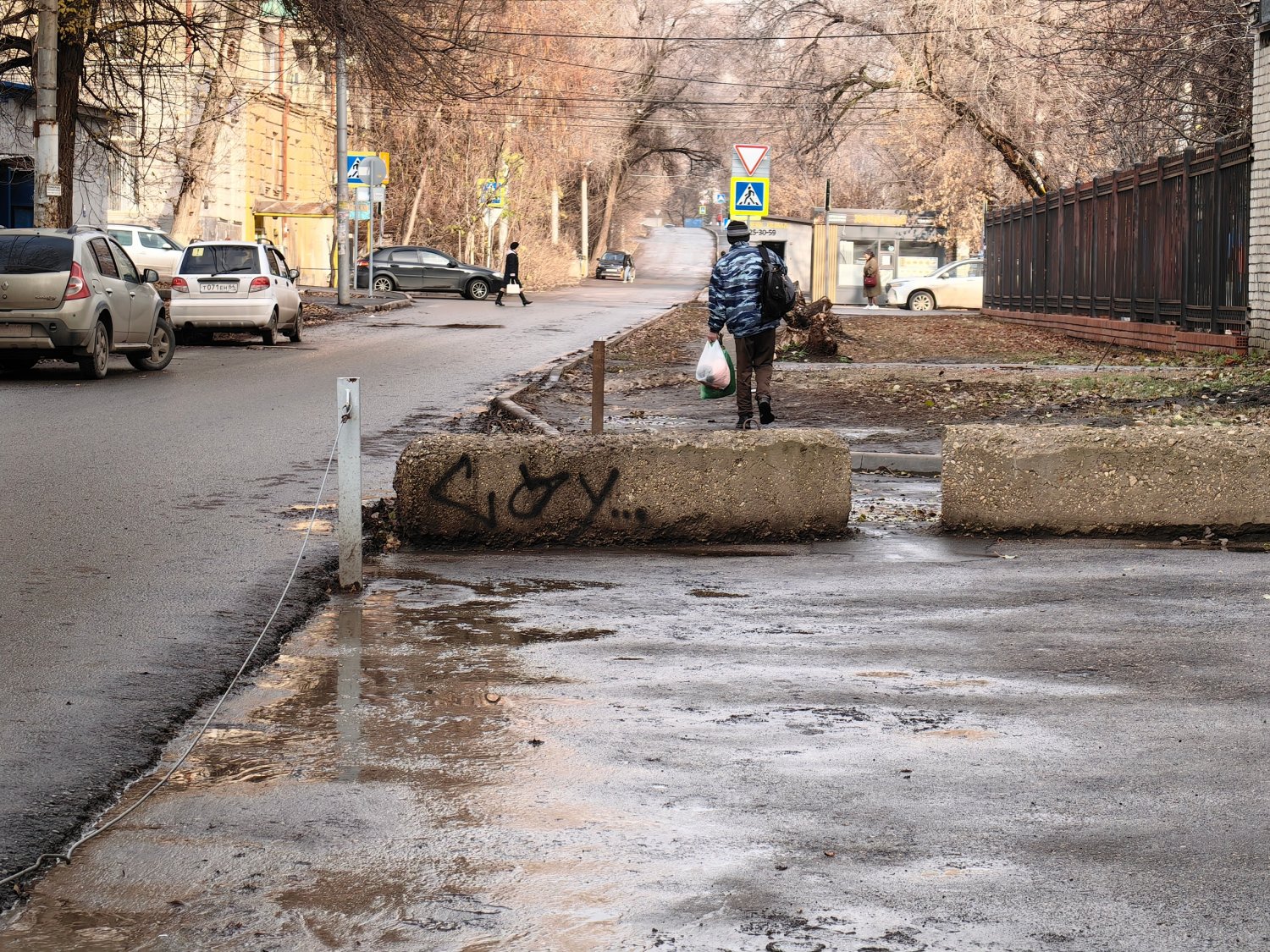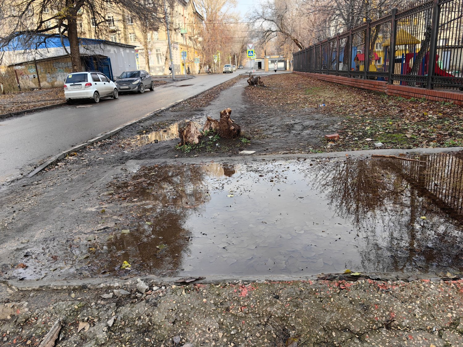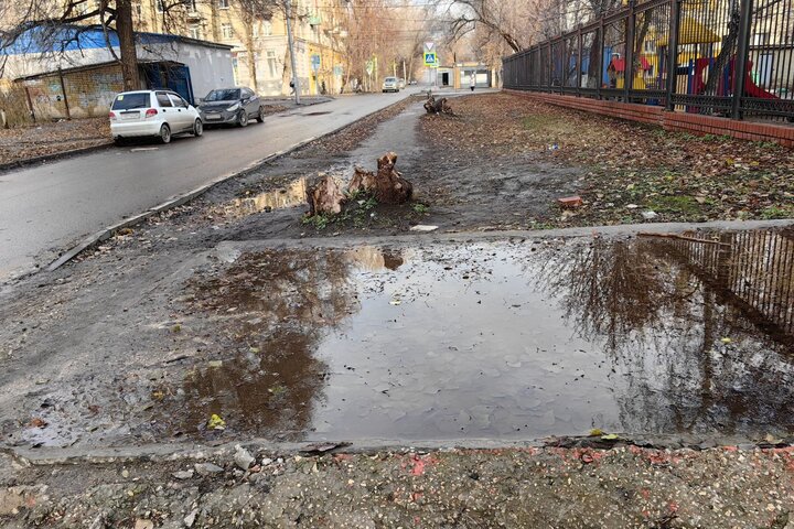 К новому корпусу № 25 СГТУ (научно-информационный центр вуза) со стороны 2-й Садовой нет пешеходных дорожек по обеим сторонам улицы Миротворцева. Об этом ИА «Версия-Саратов» рассказал местный житель. «Студентам и просто пешеходам приходится или рисковать жизнями на проезжей части, или месить грязь на вытоптанных газонах», — сообщил читатель.
